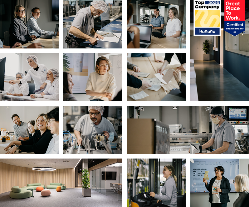 Wir besprechen Dinge auf Augenhöhe – in der Produktion genauso wie im Büro. Und wir glauben: Wer sich wohlfühlt, macht die besseren Ideen möglich. Vielleicht siehst du dich ja auf einem dieser Bilder – oder in der nächsten Zeile deiner Bewerbung.